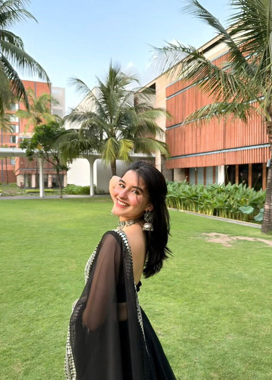 Sleek Black Saree with Light Embellishments