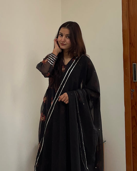 Sequins Sparkle Black Anarkali Kurti Set