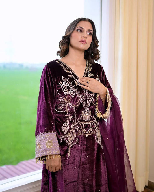 -27% OFFMajestic Violet Velvet Kurti