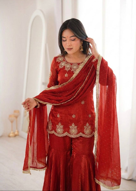 -25% OFFEmbroidered Chinon Silk Kurta Set