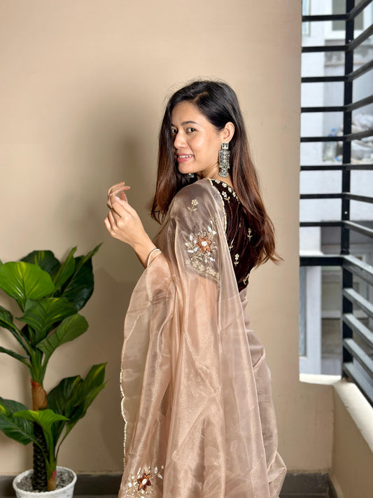 Sold outDual Shaded Bloom Chinon Silk Saree