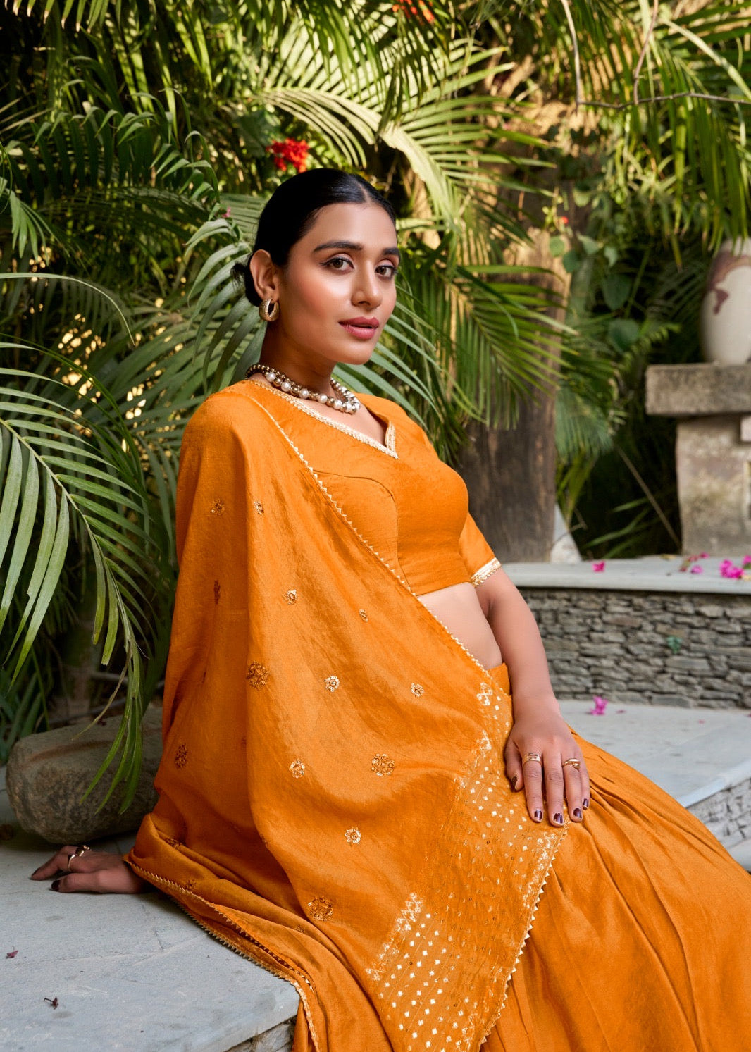 Sequin-Embellished Chanderi Lehenga Set